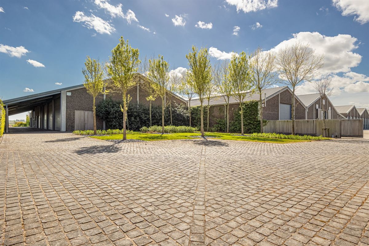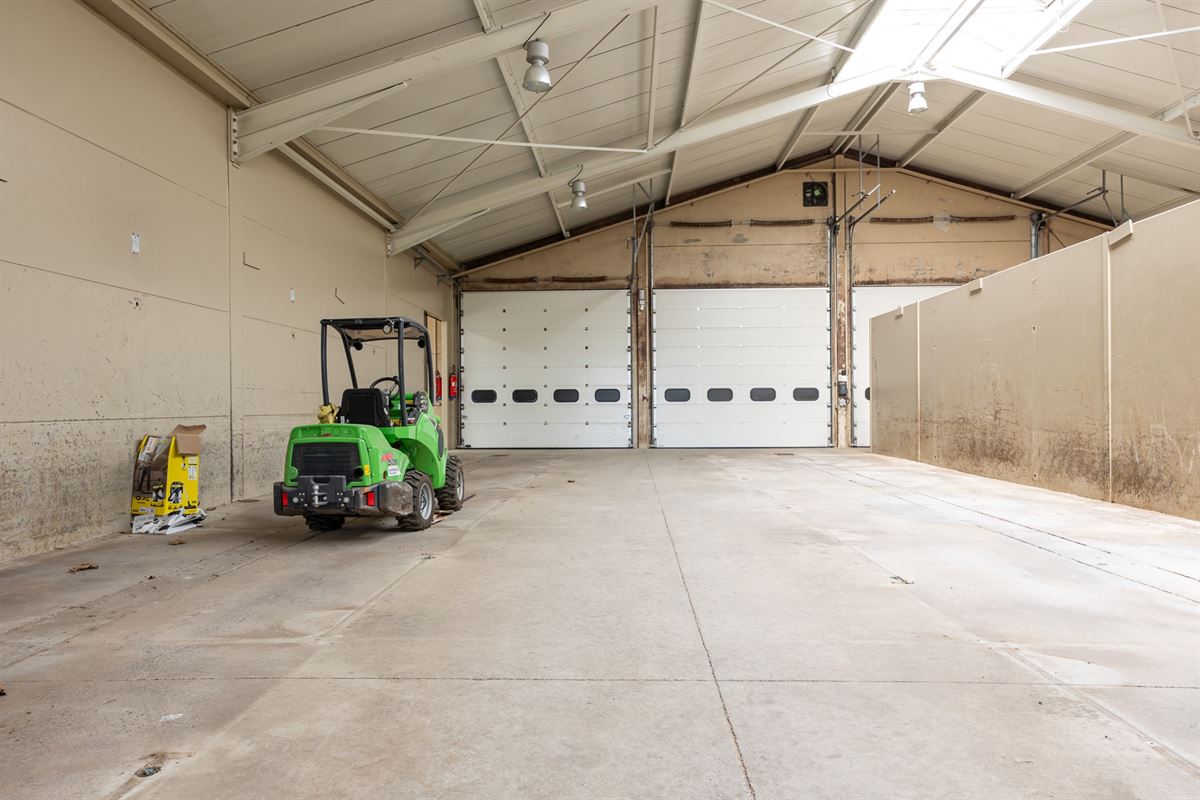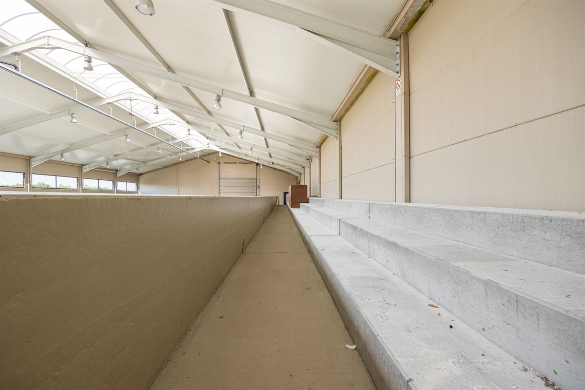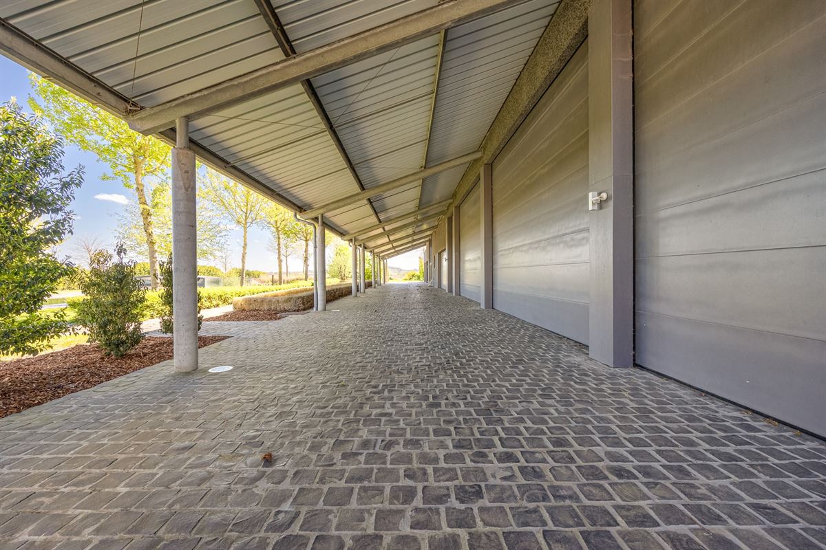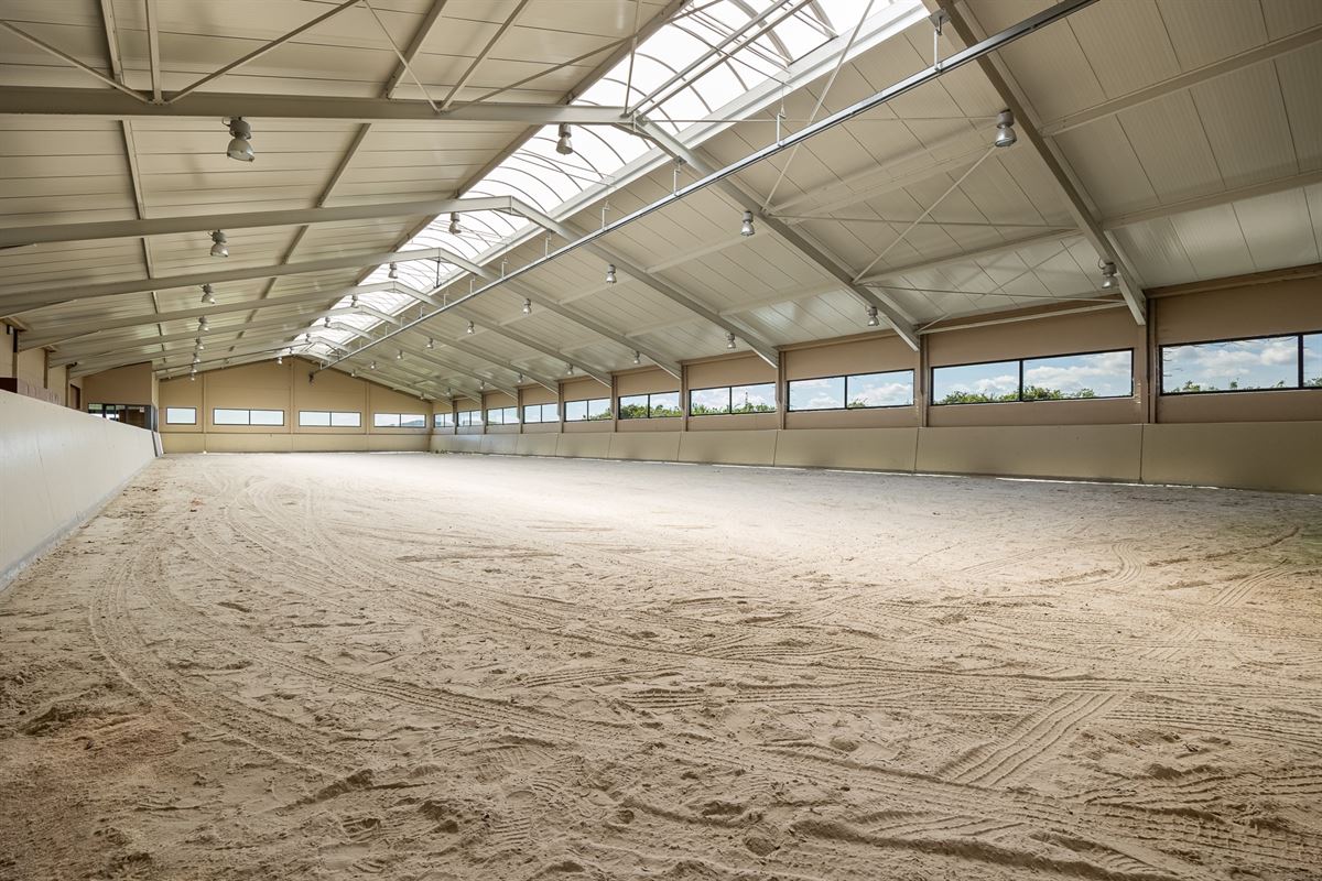 Het terrein omvat talrijke bijgebouwen, waaronder stalgebouwen, binnenpiste van 60m op 20m voorzien van tribune en jurytoog. Aanpalende kantine met zowel zicht op de binnenpiste als op de buitenpiste. Verschillende bergingen en magazijnen, ideaal voor agrariërs, bedrijfsvoerders of professionele paardenmensen. De vele overdekte parkeerruimtes en carports voorzien in voldoende opslagcapaciteit.