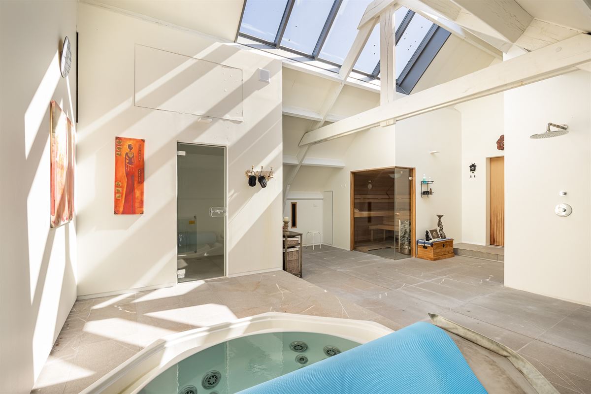 De buitenruimtes zijn sfeervol ingericht met terrassen, tuinen met waterpartijen en groene zones die volledige privacy bieden. Moderne doucheruimtes, wellnessfaciliteiten en kantoorruimtes completeren het aanbod.